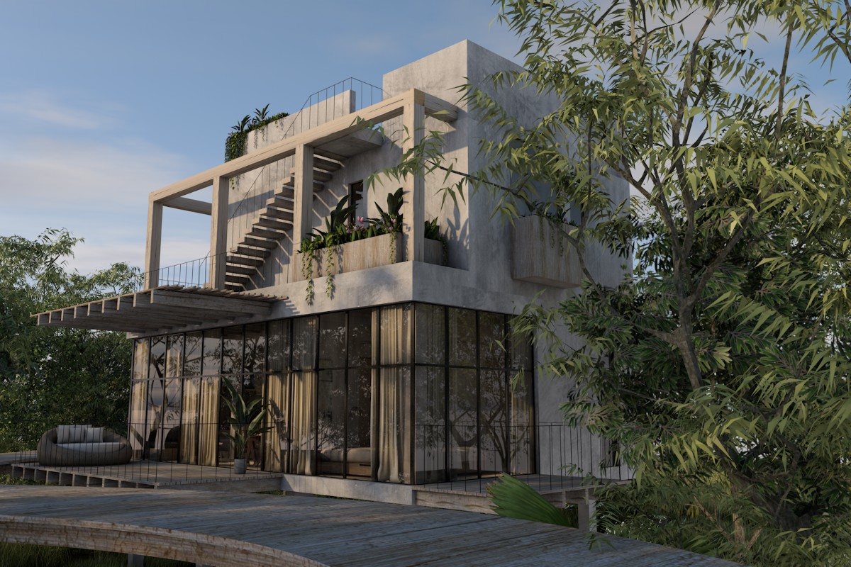 Spanning 232 m² across two levels plus a rooftop, this home features spacious interiors, elegant finishes, and a seamless connection to the outdoors. The private rooftop terrace with a pool is the perfect place to unwind and soak in the lush jungle surroundings.