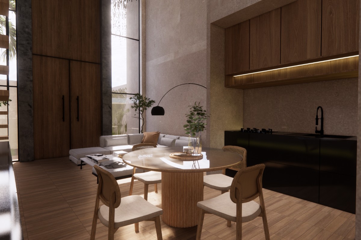 This low-density development consists of only five villas, with 40% of the land dedicated to green areas and a maximum of three levels, ensuring privacy and exclusivity.