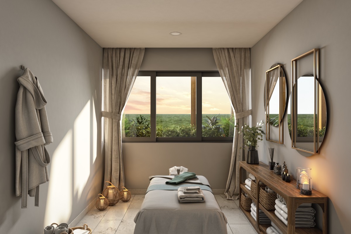 Discover the perfect fusion of Mayan-inspired architecture and modern luxury with this exclusive 2-bedroom garden residence at Carey Tulum. Situated in the lush surroundings of Selva Zama, Tulum, this beautifully designed condo offers 106.15 m² of total space, including a private garden for the ultimate indoor-outdoor living experience.