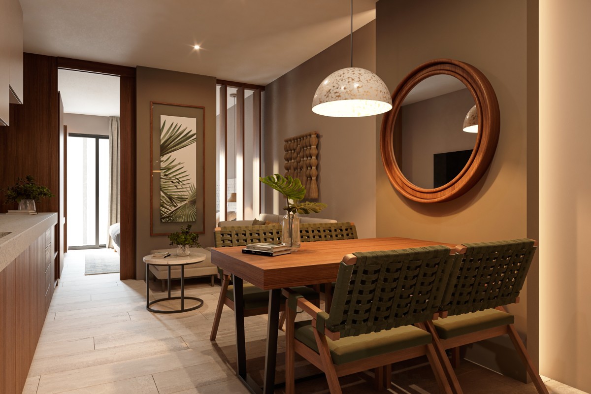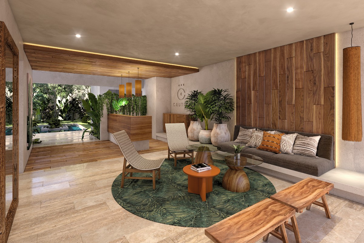 Experience modern living in Cautiva Tulum, a development that seamlessly blends contemporary design with Tulum’s natural beauty. This 2 bedroom, 2 bathroom condo offers a spacious layout with an interior of 75.25 m², plus a 10.65 m² covered terrace, for a total of 85.90 m².