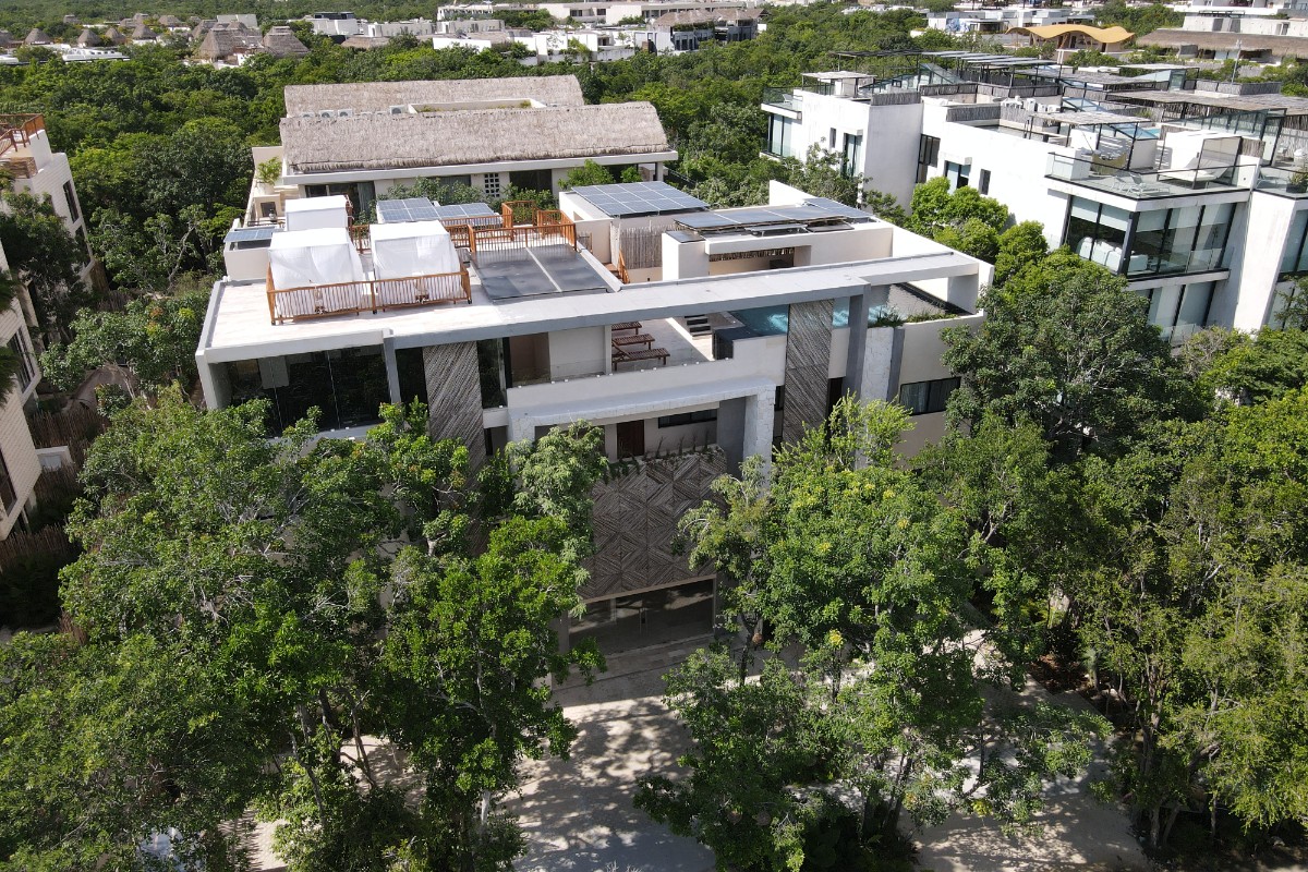 Welcome to Unit 101 at Chen Luum, an exclusive residence in the heart of Luum Zama, Tulum’s premier eco-conscious community. This spacious 3-bedroom, 3-bathroom ground floor apartment blends modern luxury with tropical charm, providing a perfect setting for a serene lifestyle.