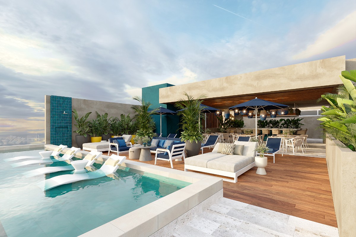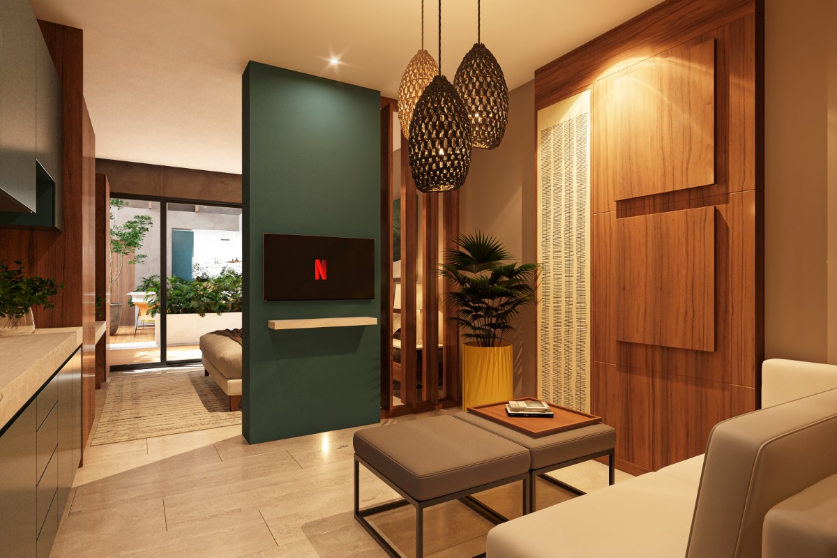 Residents at Olaya enjoy access to a full range of premium amenities including a lap pool, jacuzzi, sauna, gym, hydrotherapy area, restaurant, fire pit, massage area, rooftop bar, and more—perfect for those seeking a blend of luxury and convenience in the heart of Playa del Carmen.