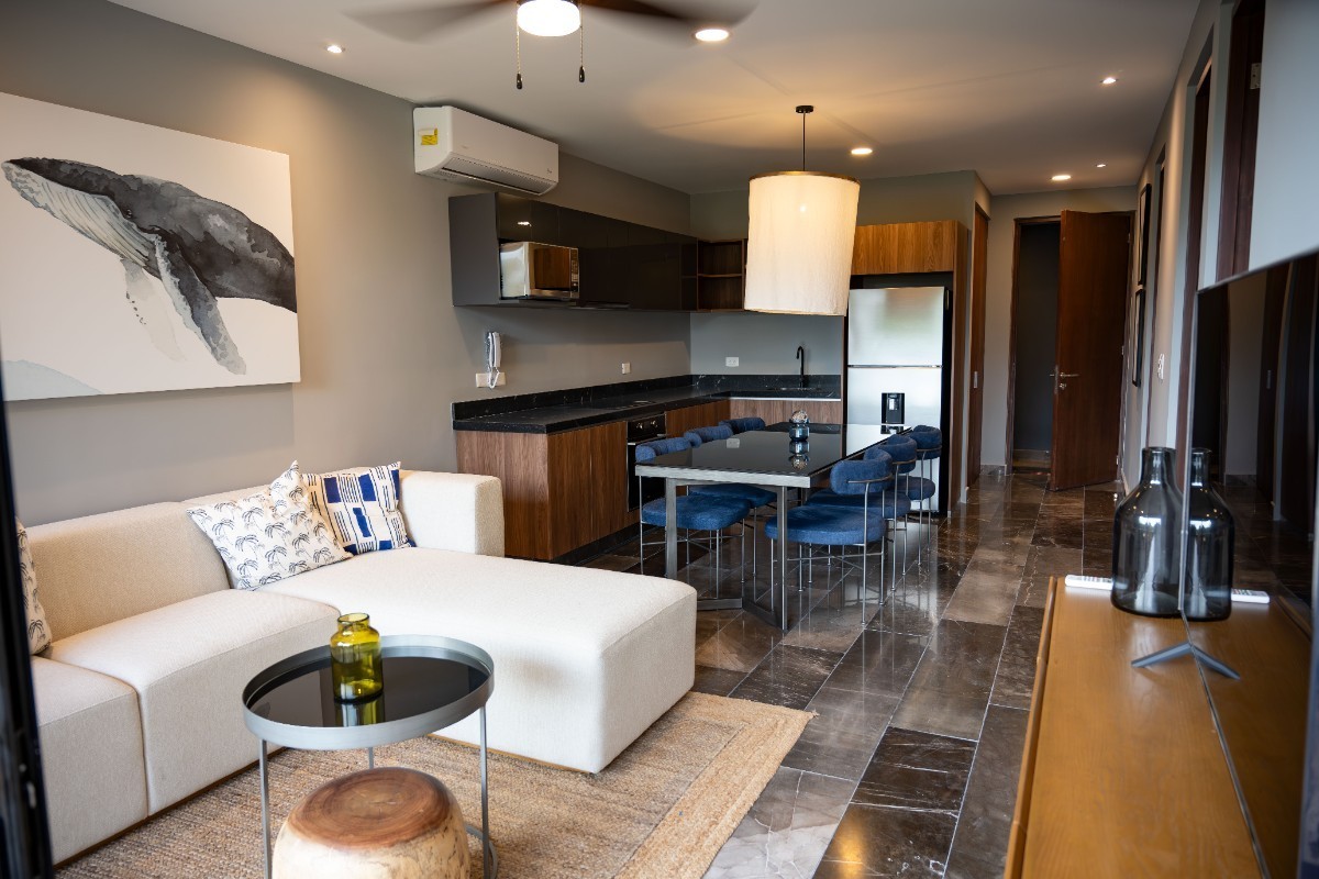 Discover the perfect blend of elegance and nature in this stunning 2-bedroom, 2-bathroom condo at Paramar Black, one of the most exclusive developments in Aldea Zama. Spanning 80 m², this sophisticated residence is designed with black-toned aesthetics that beautifully contrast with natural materials, creating a modern yet organic atmosphere.